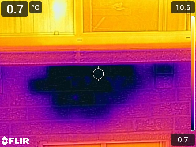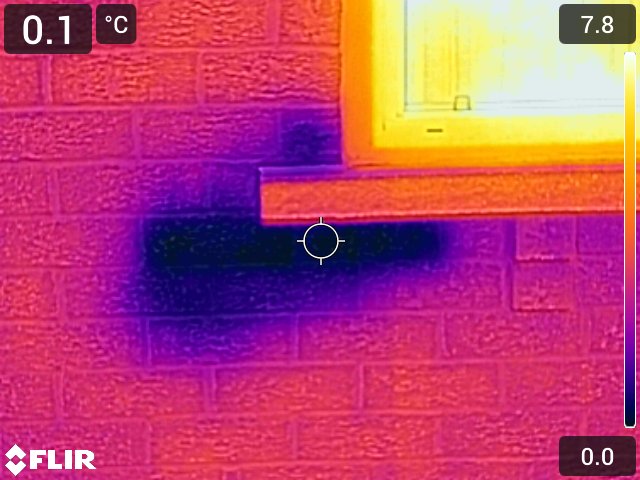 Below is an example of a localized thermal anomaly identified below a window. This condition was not visually apparent during inspection and required further verification through moisture measurement and engineering review.